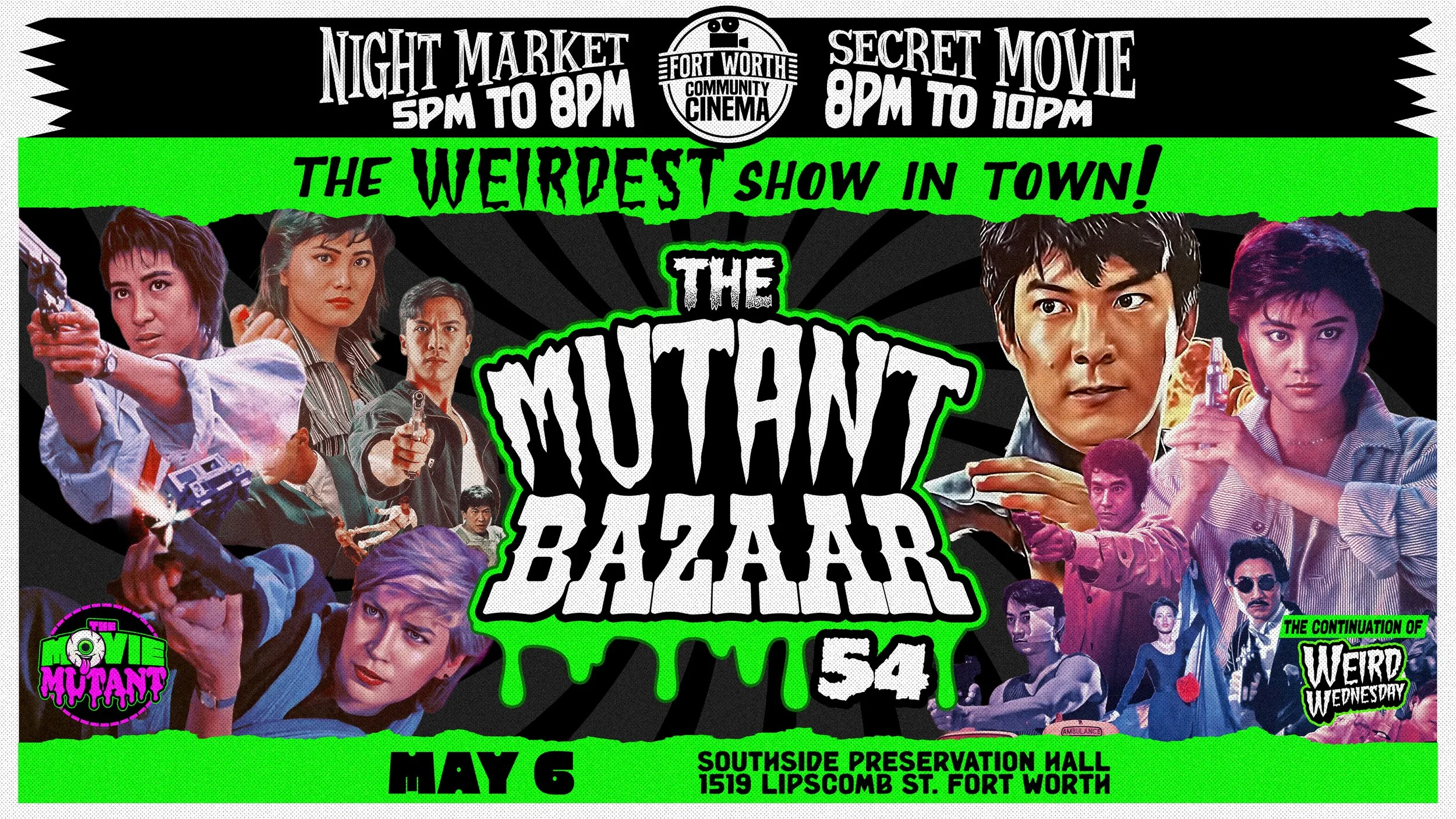 The weirdest show in town is back! 👁️🟢 Join us for The Mutant Bazaar #53, part of the ongoing Weird Wednesday series by Fort Worth Community Cinema.