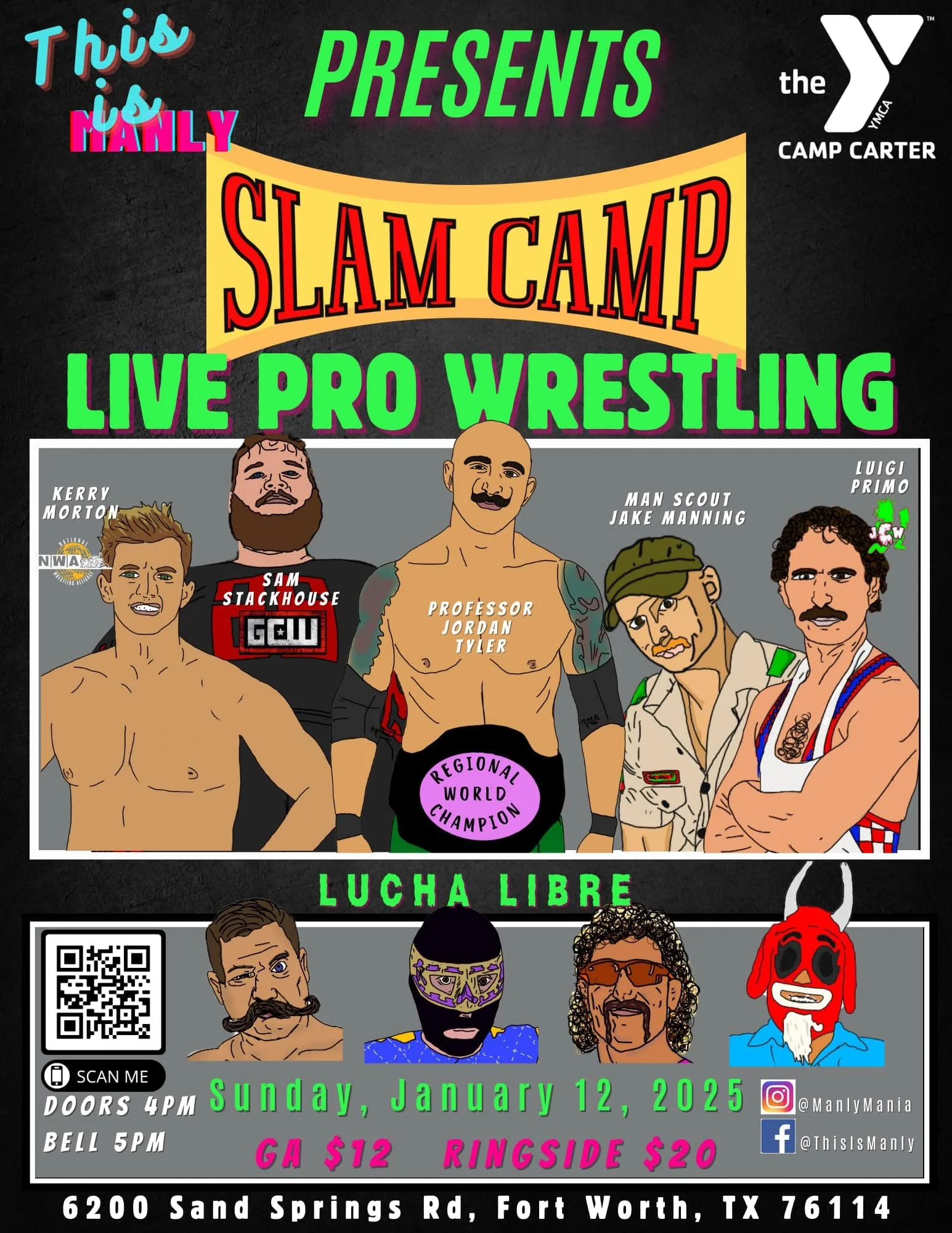 Get ready for an action-packed event! MISTER PICOSO is thrilled to be part of Slam Camp: Live Pro Wrestling & Lucha Libre, where you’ll witness an epic showdown featuring top wrestling stars, including Kerry Morton, Sam Stackhouse, Luigi Primo, and many more!