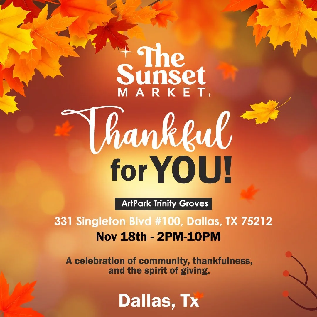 THE SUNSET MARKET Saturday, November 18, 2023 2:00 PM 10:00 PM ARTPARK TRINITY GROVES 331 Singleton Boulevard Dallas, TX, 75212 United States (map) Google Calendar ICS