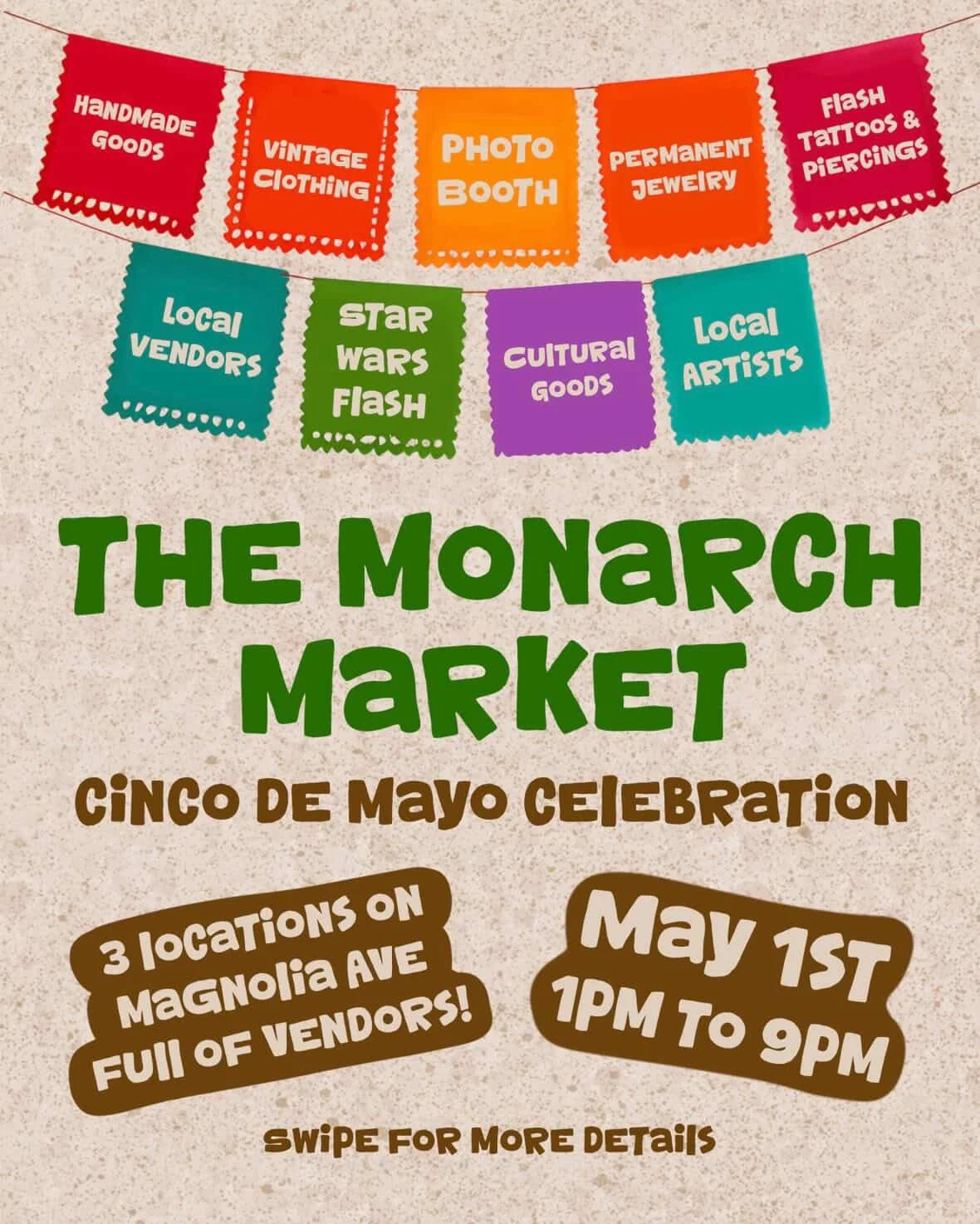 Join us for The Monarch Market as they celebrate Cinco de Mayo with a vibrant, community-filled market along Magnolia Ave! 🎉